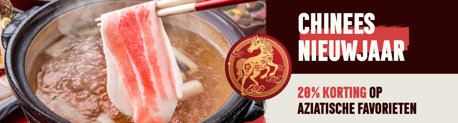 Wist je dat Chinees Nieuwjaar heel anders wordt gevierd dan onze eigen jaarwisseling? Zo heeft ieder jaar een eigen naam en aankomend  jaar is het het jaar van het Vuurpaard. In de Chinese gemeenschap wordt 15 dagen feest gevierd. Van 17 februari tot 3 maart om precies te zijn en wij vieren mee met een leuke actie. In deze periode bieden we namelijk maar liefst 20% korting op klassiekers uit de Chinese keuken.