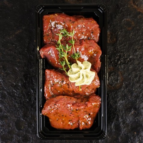 Hertenbiefstukjes, speciaal gesneden voor de gourmet! Er zitten vier hertenbiefstukjes in een gourmetbakje. U krijgt het bevroren gevacumeerd aan. Ontdooi een dag vantevoren in de koelkast en presenteer op het meegeleverde gourmetschaaltje of op uw eigen schaal, naar wens garneren voor een leuke presentatie. De foto is een indicatie hoe het eruit kan komen te zien.