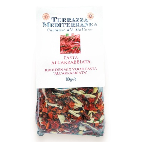 Pittige kruidenmix in zakje. Mix van tomaat, ui, zout, peterselie en rode pepertjes.