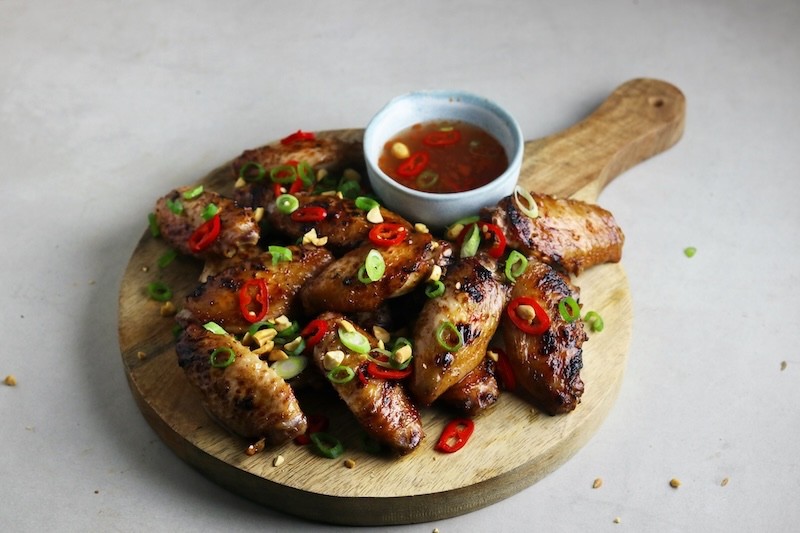 Ben je niet vies van een beetje kluiven op z’n tijd? Dan zéker deze Vietnamese kippenvleugels van @bbqjunkie eens proberen. Ze zijn de perfecte combinatie van zoet, zout, zuur en pittig. Door de kippenvleugels eerst enkele uren te marineren in een smaakvolle marinade met onder andere vissaus, limoen en knoflook, trekken de smaken diep in het vlees. Vervolgens worden de vleugels langzaam gegaard op de BBQ en kort gegrild boven directe hitte voor een krokante buitenkant.
