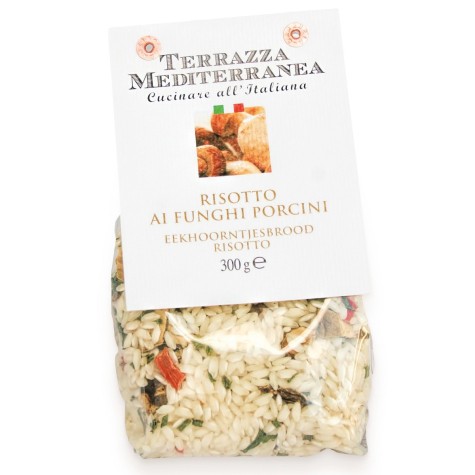 Carnaroli rijst met eekhoorntjesbrood, peen, peterselie, bieslook, en knoflook.