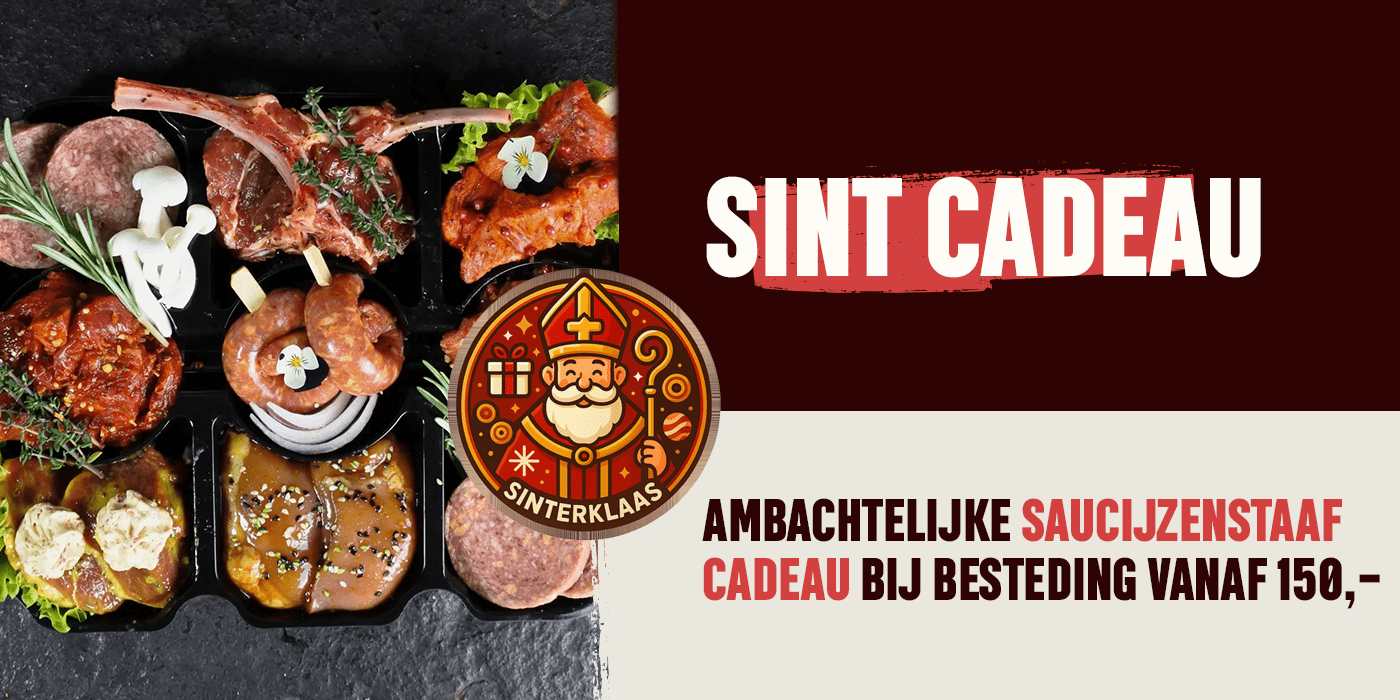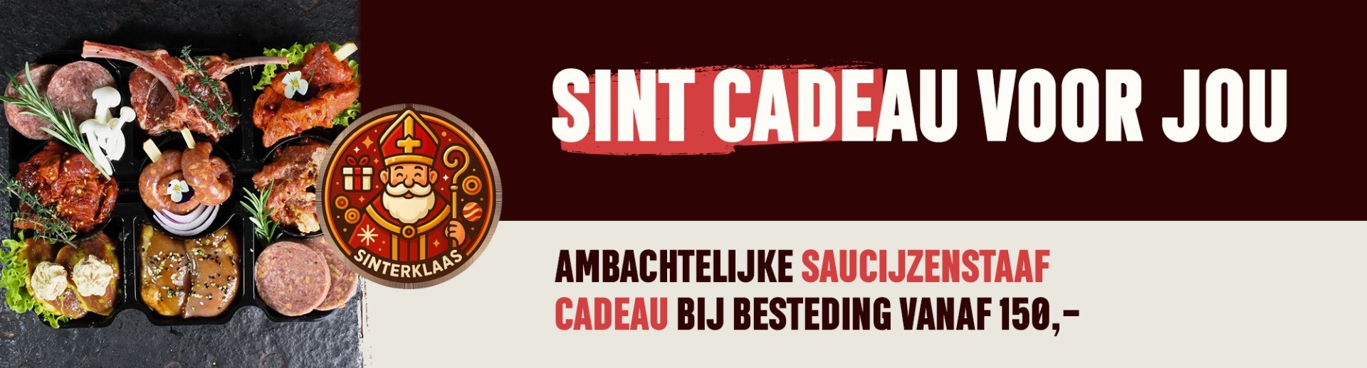 Sinterklaas is weer in 't land! De feestdagen zijn voor ons de tijd van gezelligheid, lekker eten en mooie momenten samen met familie. En natuurlijk mag Pakjesavond niet ontbreken! Bij ons thuis begint Pakjesavond standaard met een lekker diner of gezellige gourmet en staat de tafel daarna vol verschillende happen. Daarom hebben we dit jaar bij The Butchery een leuke actie: bestel je voor €150,- of meer? Dan krijg je van ons een saucijzenstaaf cadeau. Lekker knapperig, royaal gevuld en ideaal om op te snijden bij de borrel!