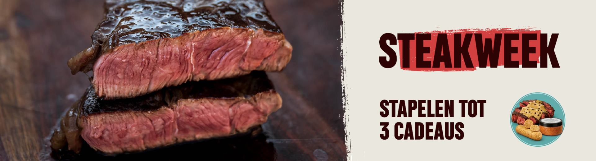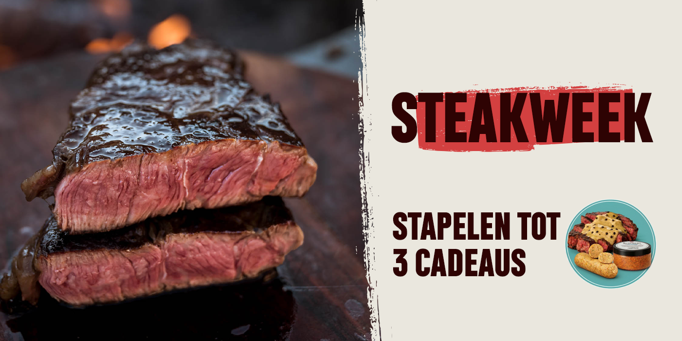 Bij 135,- gratis kruidenboter *Bij 160,- gratis kruidenboter & steak seasoning *Bij 180,- gratis kruidenboter, steak seasoning & peperroomsaus *