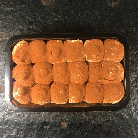 suiker, eieren, mascarpone, koffie, likeur en lange vingers.Voedingswaarde