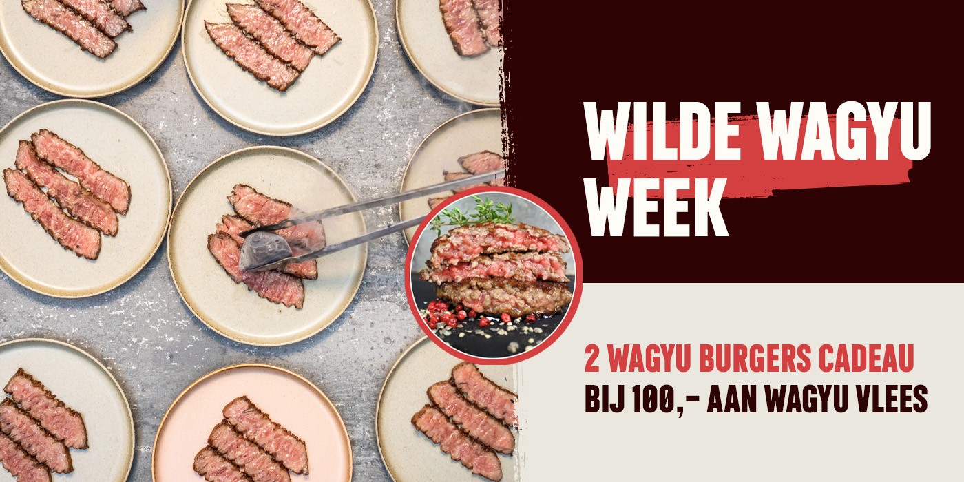 Het is Wilde Wagyu Week bij The Butchery en dat betekent dat we 2 Wagyu burgers weggeven bij besteding van €100,- aan Wagyu (Japans, Australisch of Amerikaans)!