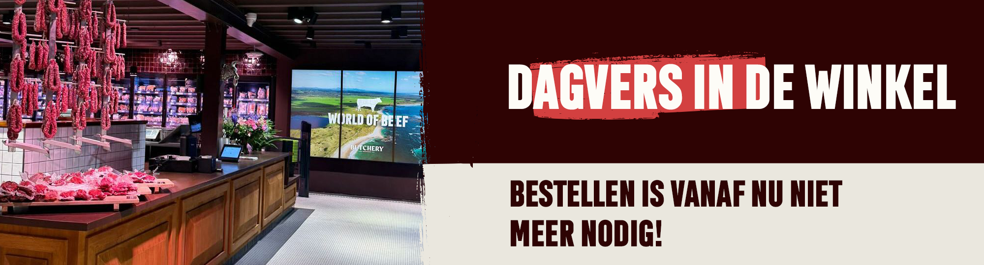 Zoals altijd kun je bij ons terecht voor dagelijks vlees en uiteraard hoef je daarvoor vooraf geen bestelling te plaatsen. De vitrines liggen vol met vers vlees, waarvoor je op elk moment spontaan langs kunt komen.