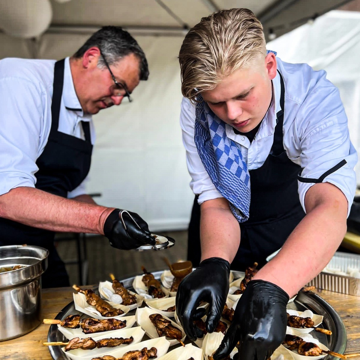 Ook verzorgen we nog steeds catering op locatie: van BBQ's met koks en een varken aan het spit tot walking dinners met allemaal kleine hapjes.